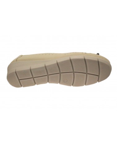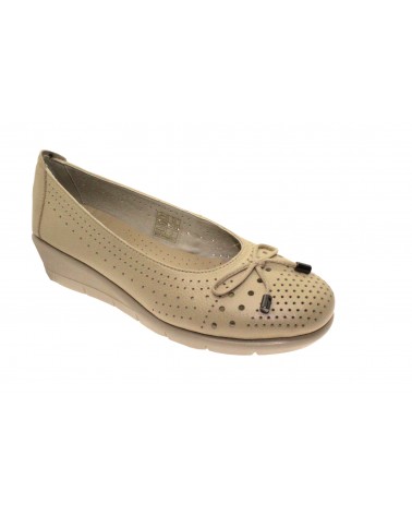 Scarpa estiva scollata Susimoda 42010 realizzata in morbida pelle beige traforata con fodera in pelle chiara. La scollatura è contenitiva ma non costringe . La zeppa è in gomma chiara ed è alta 3 cm.