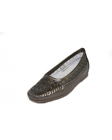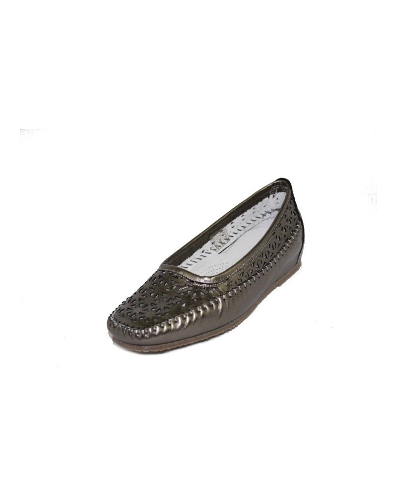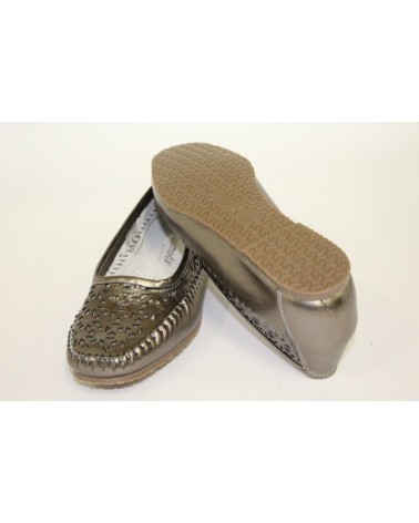 Ballerina indianina Susimoda traforata in pelle laminato peltro. Fodera in pelle chiara. Zeppa interna di 3 cm.