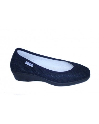 Ballerina in tessuto estivo nero La Cadena 69107 (modello Ramadoro) con zeppa in gomma alta 1 cm.