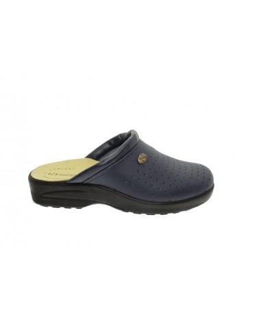 La ciabatta Superga 601 è il classico sabot sanitario anatomico blu in pelle con buchini, il sottopiede è in pelle scamosciata e la zeppa in gomma. Ideale da lavoro ma anche per la casa.