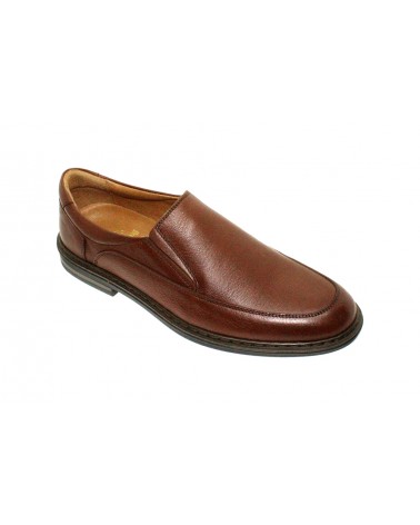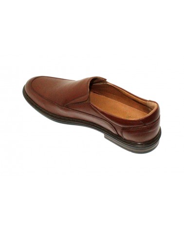 Scarpa classica Boom (ex Boomerang) in pelle color tabacco e fondo in gomma leggera. E' un modello liscio con doppio soffietto sul collo del piede e sottopiede estraibile.
