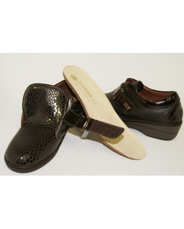 Scarpa Susimoda 8390 linea Walksan color testa moro con plantare estraibile e tomaia elasticizzata. Chiusura con velcro fondo in gomma.