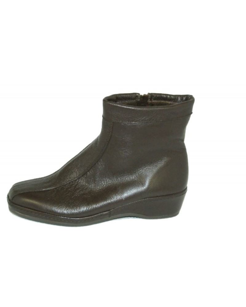 Stivaletto con cerniera Susimoda in morbida pelle di cervo color testa moro, fodera calda in lana, lavorazione california, zeppa 3 cm e fondo in gomma invernale. Adatto a piedi larghi e delicati.