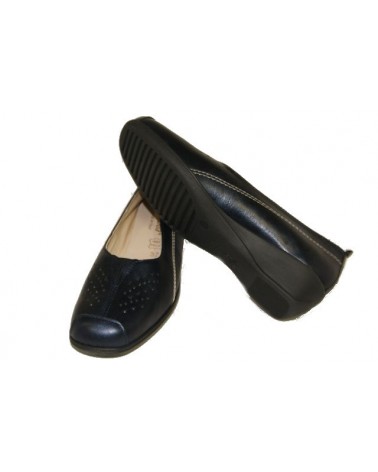 Decolletè Susimoda 4205 linea Dynamic Flex in pelle blu traforata, fodera in pelle chiara e con zeppa in gomma alta 3 cm.