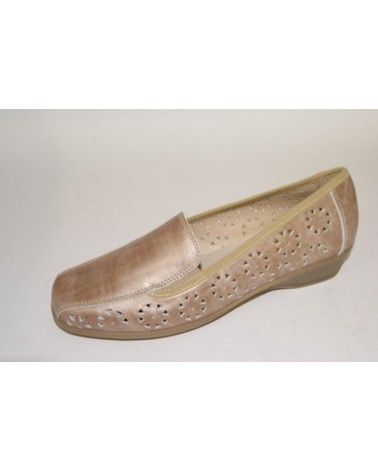 Mocassino Susimoda in pelle beige perlata traforata