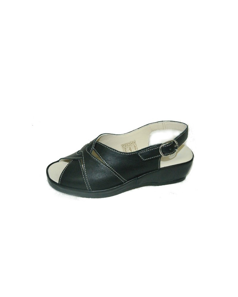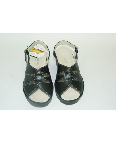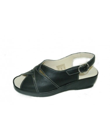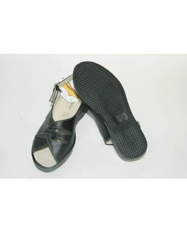 Sandalo comfort Susimoda 3209 linea California in morbida pelle di cervo nera con appoggio anatomico. La zeppa è alta 3 cm e ricoperta in pelle, la suola è in gomma antiscivolo. E' un modello classico, morbido e comodo, adatto per piedi larghi.