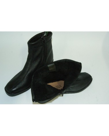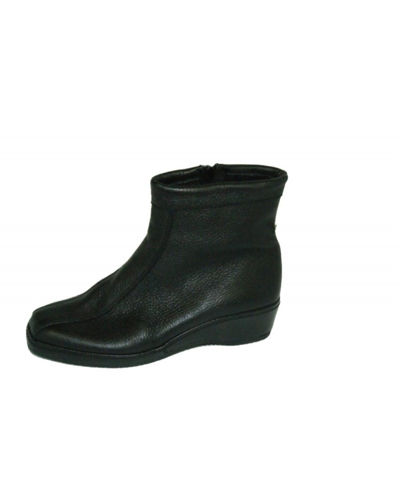 Stivaletto con cerniera Susimoda in morbida pelle di cervo nera, fodera calda in lana, lavorazione california, zeppa 3 cm e fondo in gomma invernale. Adatto a piedi larghi e delicati.