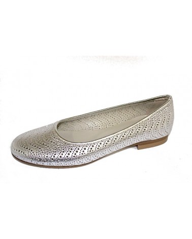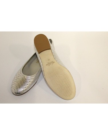 Ballerina Henry & Sons realizzata in pelle argento traforata. Fodera in pelle e fondo in cuoio. Molto leggera e confortevole . Calzata normale.