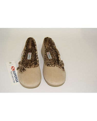 Ballerina per la casa Superga in caldo velluto beige, profili e fodera animalier.