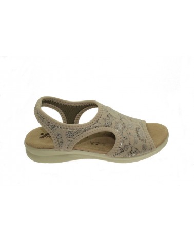 Sandalo Susimoda linea No Stress 2760. Tomaia in licra elasticizzata tortora con screziature argento, suola in morbida schiuma di lattice rivestito in microfibra.