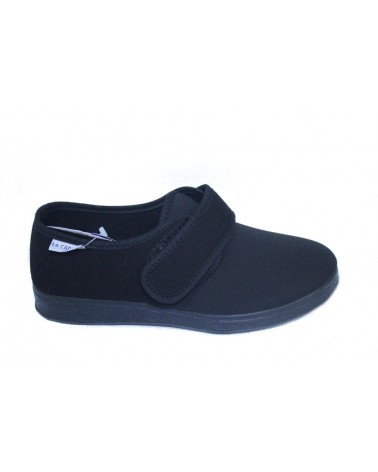 Pantofola estiva La Cadena 54287 (modello Ramadoro) in morbida licra nera elasticizzata, chiusura con strappo regolabile, suola in gomma, altezza 2 cm.