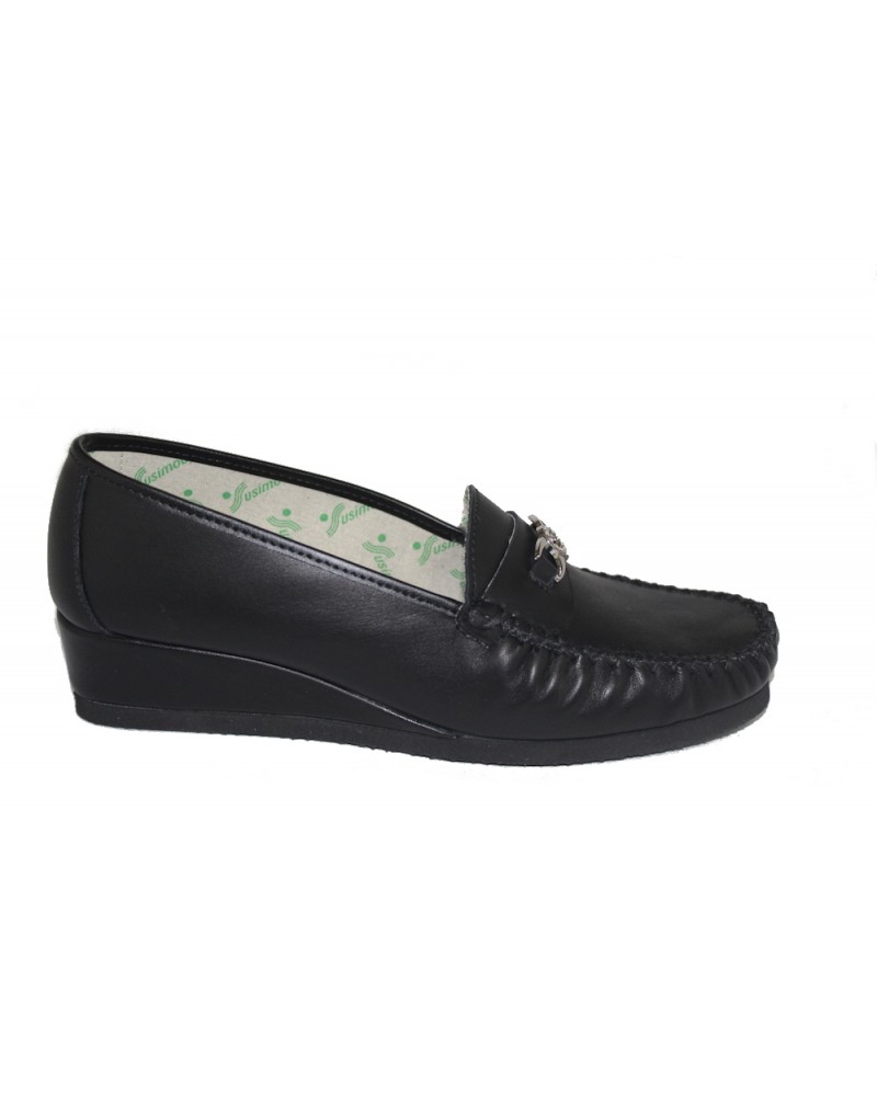 Mocassino Susimoda 4901 in pelle nera con zeppa in gomma