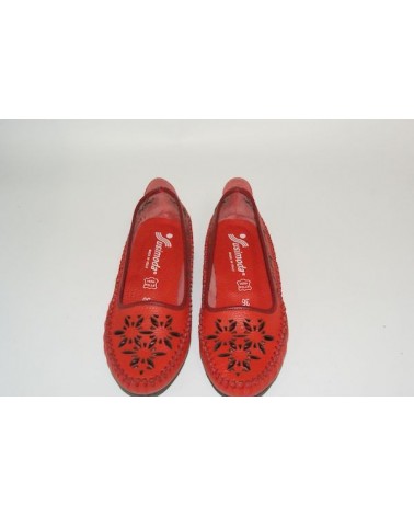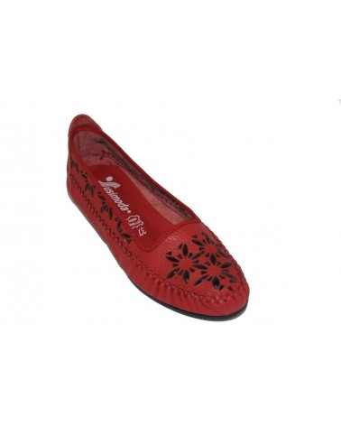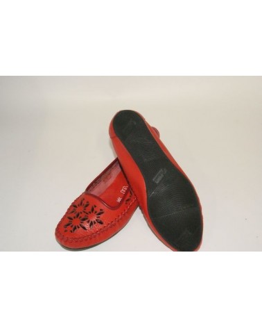 Mocassino indianino Susimoda 4458 morbidissimo con zeppa interna alta cm 3. Realizzato in morbida pelle rossa traforata ha la suola in gomma estiva.