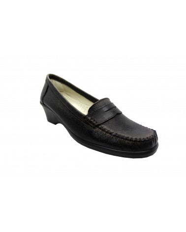 Mocassino Selleria del Borgo in morbida pelle nera con zeppa in gomma 3 cm