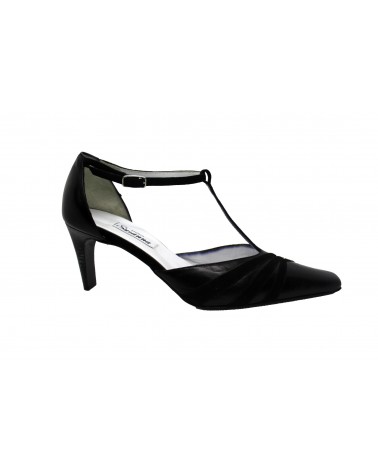 Scarpa sandalo Moda di Fausto Studio Susanna in pelle nera con laccetto alla caviglia. Made in Italy realizzata in vera pelle con fondo cuoio. Il tacco è alto 7 cm.