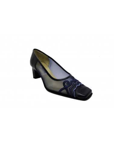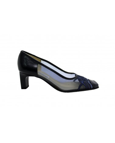 Décolletée in rete nera Moda di Fausto Studio Susanna. Molto fresca, leggera fondo in cuoio, finiture in pelle e tacco 5cm. Forma comoda e squadrata.
