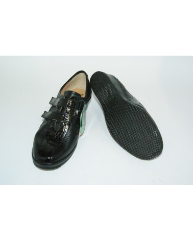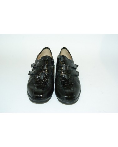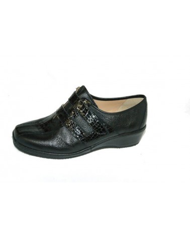 Scarpa Susimoda in morbidissima pelle di cervo nera, lavorazione california per il massimo confort.Chiusura con doppio strappo. Zeppa 4 cm.