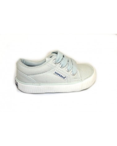 Tennis Superga bimbo in cotone azzurro con stringhe.