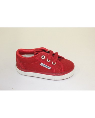 Tennis Superga bimbo in cotone rosso con stringhe.
