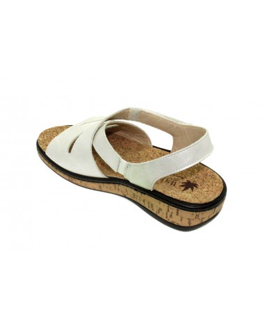 Sandalo Susimoda Walksan 2903 linea Estraibile Active in pelle bianco perla e doppia regolazione a strappo. Sottopiede estraibile ricoperto in sughero, zeppa in gomma alta 3 cm