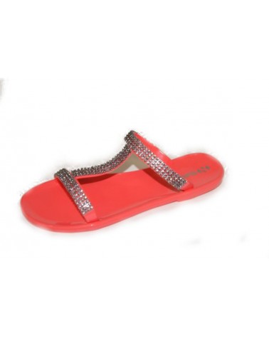 Ciabattina in morbida gomma Superga color corallo con strass sui listini.