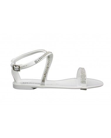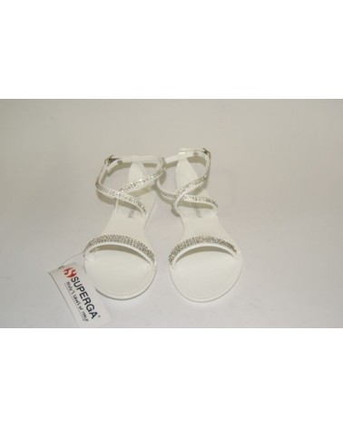 Sandalo Superga in morbida gomma con strass in colore bianco e disponibile anche in nero.