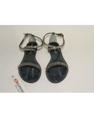 Sandalo Superga in gomma nero con strass
