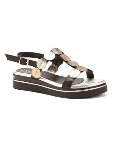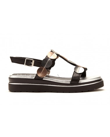 Sandalo Susimoda2934 linea D.Effe Elite in pelle nera con applicazioni e con sottopiede piuma gel rivestito in pelle.