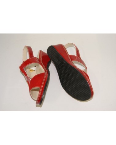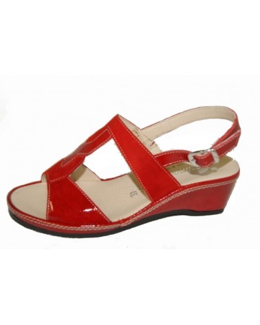 Sandalo Susimoda in camoscio e vernice rosso lavorazione california con zeppa alta cm 4.