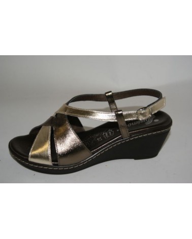 Sandalo Susimoda in pelle laminata peltro con morbido appoggio e fondo in gomma leggera. Zeppa cm 5.