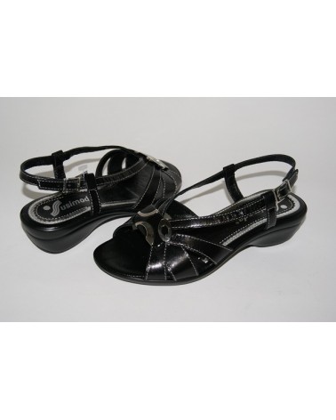 Sandalo susimoda in pelle nera, fodera pelle, zeppa 40.