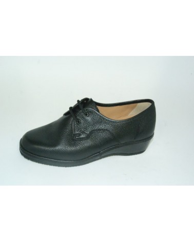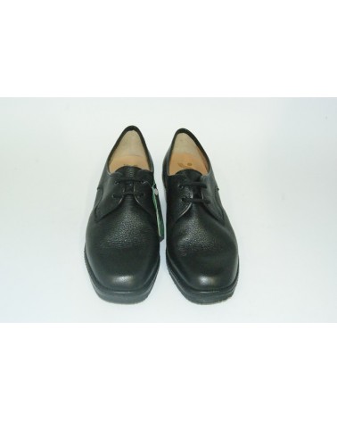 Scarpa allacciata Susimoda in morbidissima pelle di cervo nera con fodera in pelle e plantare estraibile. Pianta larga, lavorazione california, zeppa 3 cm e fondo in gomma.