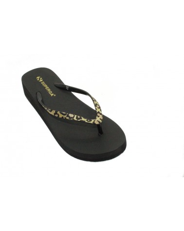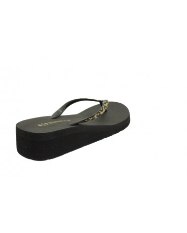 Ciabattina infradito Superga S24T203 in gomma nera e listino animalier Zeppa alta 3 cm