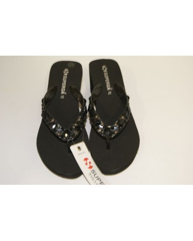 Ciabatta infradito in gomma Superga S24P589 nera con zeppa alta cm 4 impreziosita da decorazioni con pietre sintetiche luminose sull'infradito.