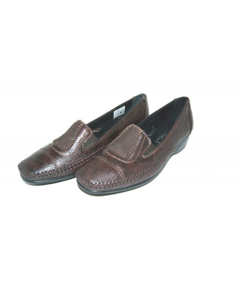 Scarpa sportiva in pelle marrone-bordeaux e zeppa in gomma. doppio soffietto in elastico sul collo del piede. Molto comoda.