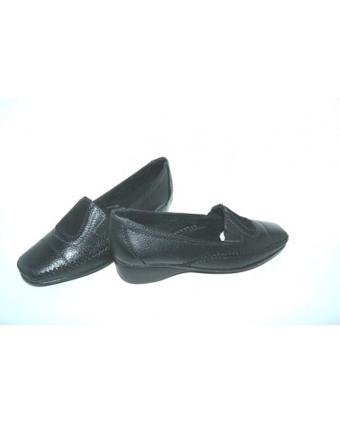 Scarpa sportiva in pelle nera e zeppa in gomma. doppio soffietto in elastico sul collo del piede. Molto comoda.Disponibile anc