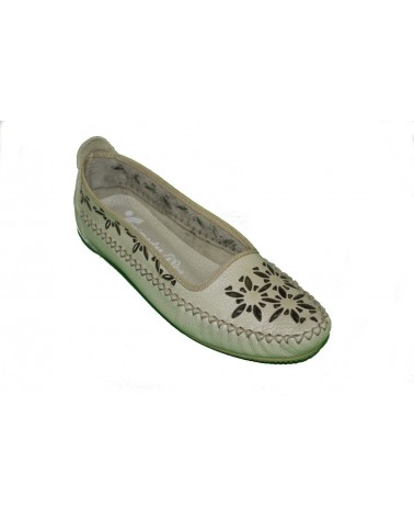 Mocassino indianino Susimoda 4458 morbidissimo con zeppa interna alta cm 3. Realizzato in morbida pelle beige traforata ha la suola in gomma estiva.
