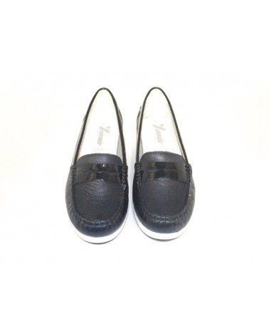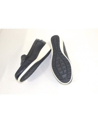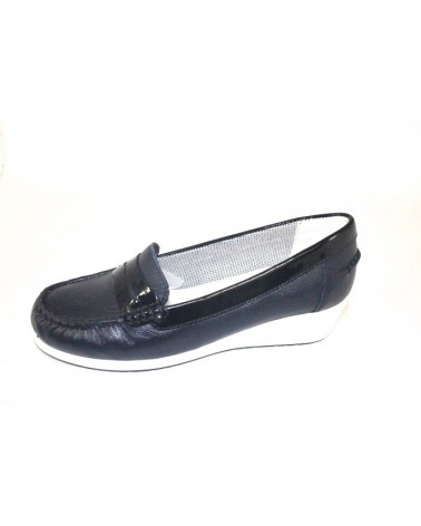 Mocassino Susimoda Linea Geranio 4784 in pelle blu con fodera chiara e zeppa in gomma alta 3,5 cm.