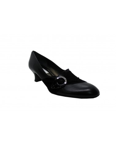Scarpa mocassino francesina Moda di Fausto Linea Susanna in morbida pelle nera con tacco 5 cm.