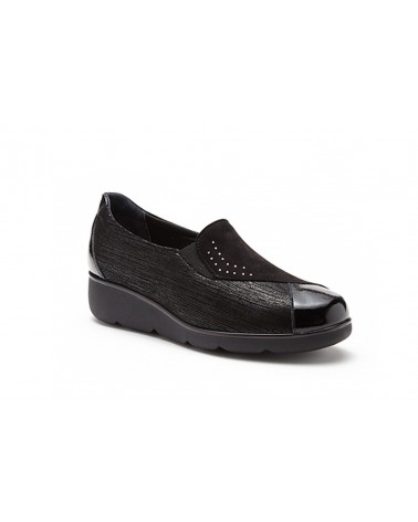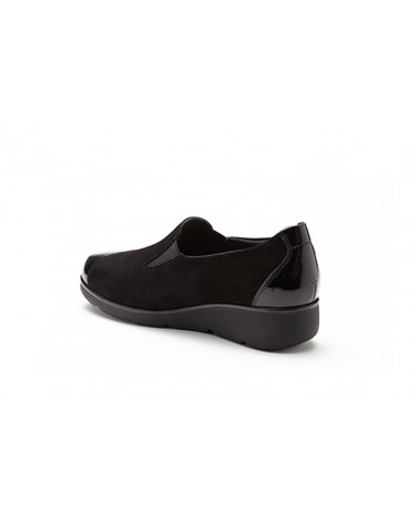 Scarpa Susimoda 871276 accollata in pelle e camoscio neri con zeppa in gomma invernale e sottopiede estraibile.