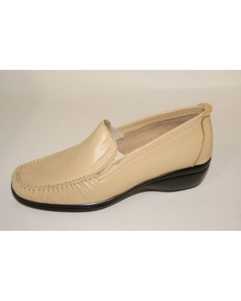 Mocassino ENG in morbida pelle beige con fondo in gomma 3 cm. Pianta larga, molto morbidi e flessibili.
