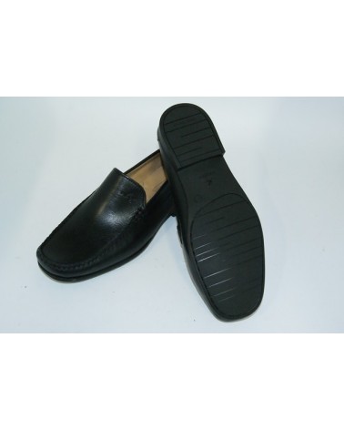 Mocassino tubolare Boomerang linea Tooter in pelle nera, fodera pelle e fondo in gomma leggera. Molto flessibile e confortevole.