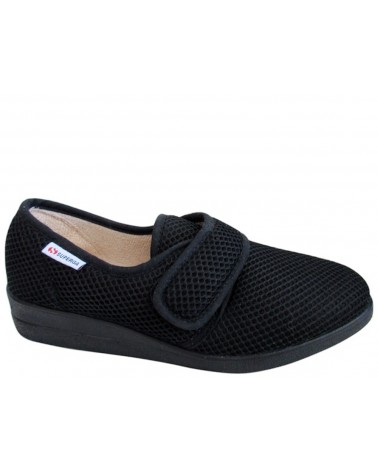 Comoda Pantofola Superga S10G933 in morbido tessuto nero lavorato a nido d'ape con chiusura regolabile con strappo. Zeppa in gomma alta 3 cm.