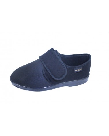 Pantofola Susimoda da uomo in licra elasticizzata nera e finiture in cotone estivo. Suola in gomma flessibile e chiusura a strappo.