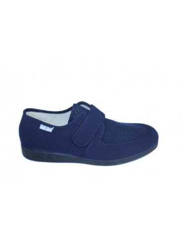 Pantofolada uomo La Cadena (ex Ramadoro) in cotone blu con strappo. Tomaia con vaschetta in rete traforata, fondo in gomma leggera.