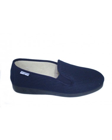 Pantofola La cadena (ex Ramadoro) in morbido cotone blu a nido d'ape con fondo in gomma.
