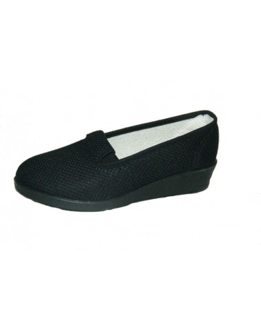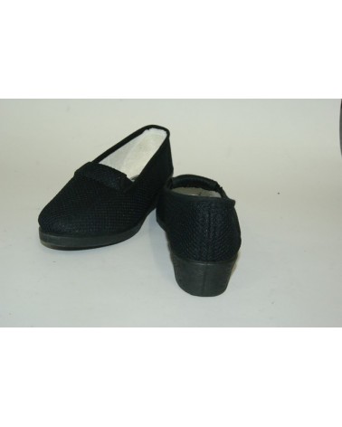 Pantofola Ramadoro in morbido cotone nero. Zeppa in gomma altezza 3cm.