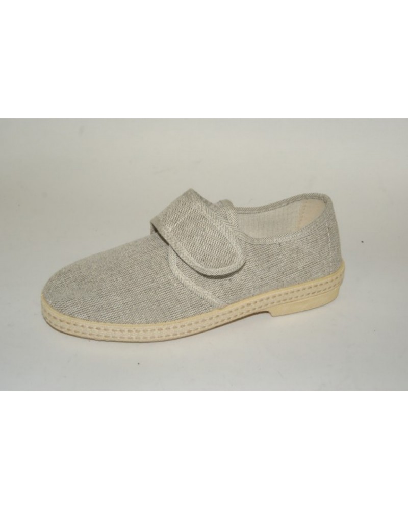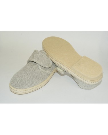 Pantofola Ramadoro in cotone beige con chiusura a strappo. Fondo in gomma.