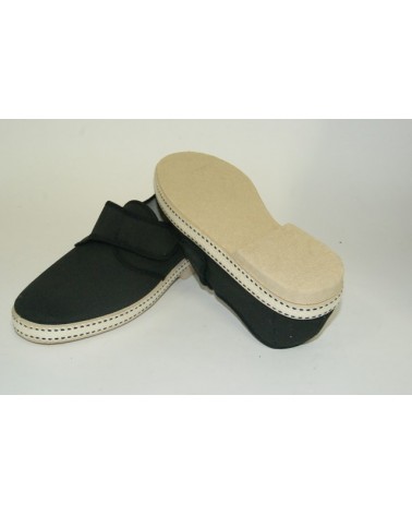 Pantofola Ramadoro in cotone nero con chiusura a strappo. Fondo in gomma.
