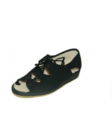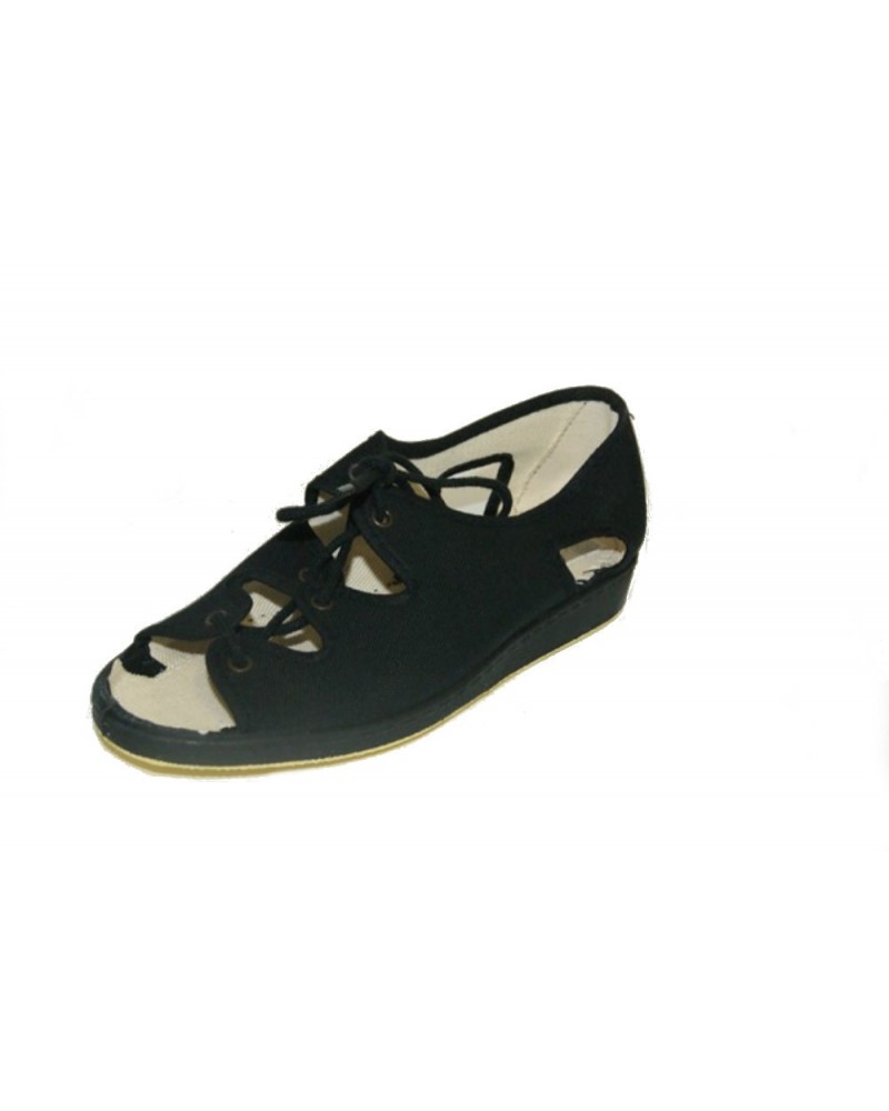 Pantofola sandalo Ramadoro in cotone nero con allacciatura ampiamente regolabile. zeppa in gomma 2cm.